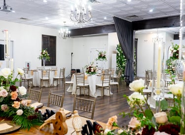 The Signature Package includes premium tables, linens, floral décor, full bar with bartender, AV and wireless mics, setup & breakdown, and access to our outdoor courtyard for ceremonies and cocktail hour..